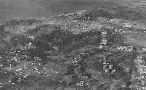 Ph00021273 - Topside, Corregidor Island, is seen with the parachutes of the 503rd Parachute Infantry strewn all over, February, 1945