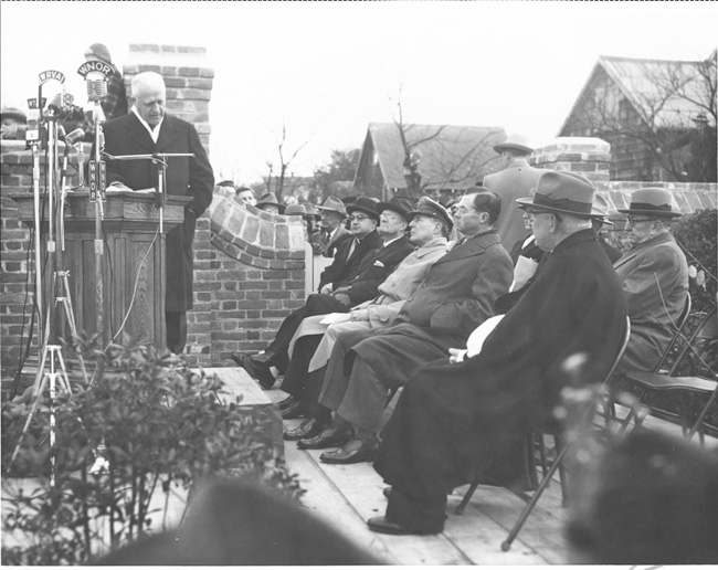 As time wore on, Riveredge fell into disrepair. Although the home itself could not be saved, a wall was erected at the site enclosing a garden to memorialize the spot. General MacArthur spoke at its dedication on November 18, 1951.